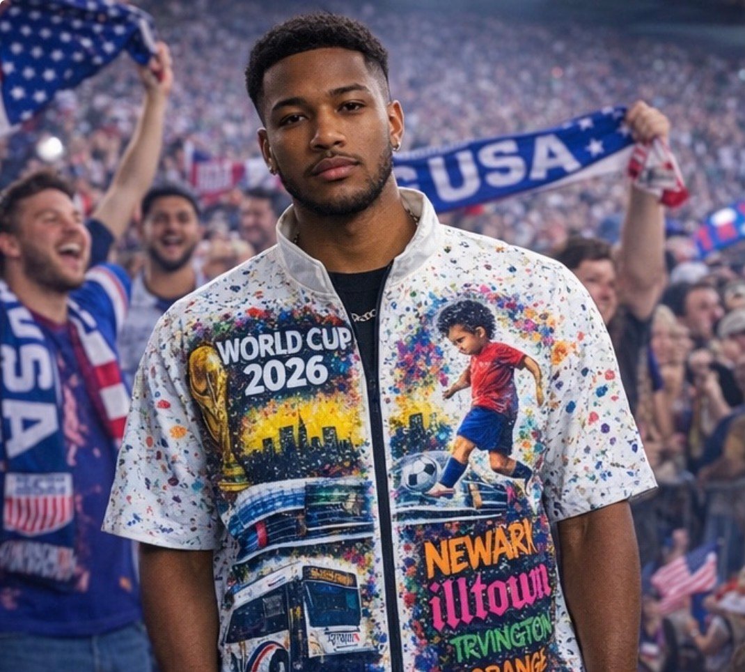 This piece is more than apparel—it’s a statement. A celebration of community, sport, and international pride, blended with the bold identity of Newark and its surrounding cities.